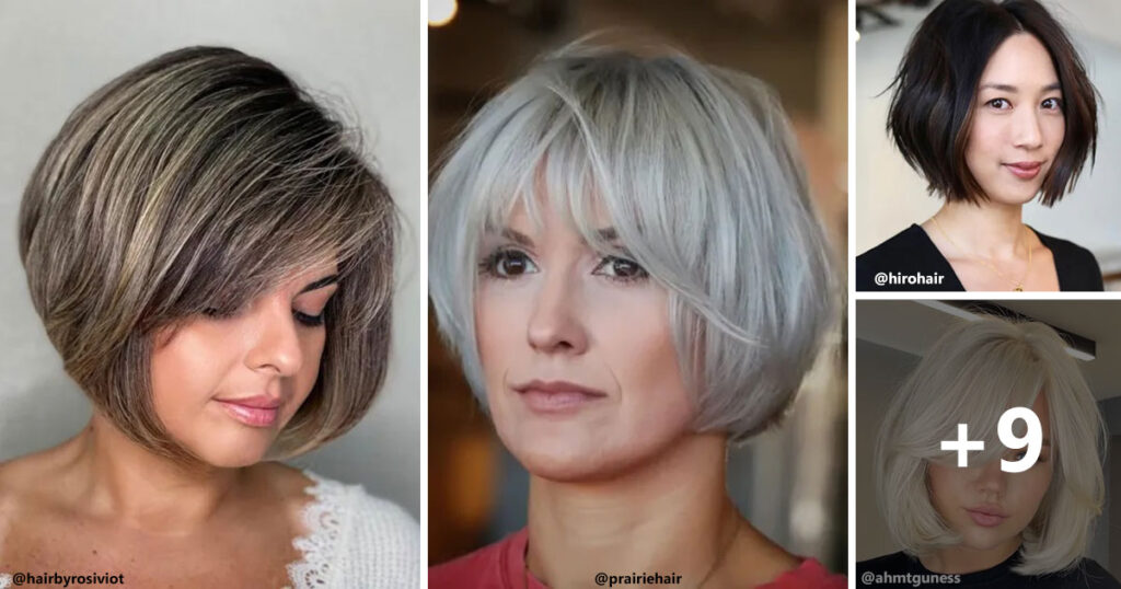Procurando uma variante lisonjeira de bob em mulheres maduras? Bobs arredondados são uma escolha clássica, pois são cheios de elegância e sofisticação. Crie uma altura invejável ao redor do topo da cabeça ao secar com uma escova redonda.